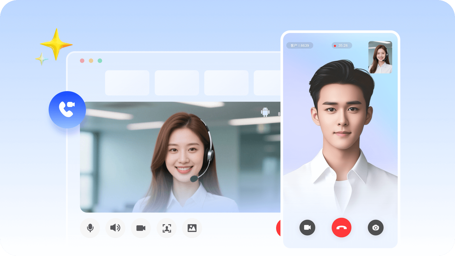 - 无需下载APP或注册账号,客户接听电话即可视频,使用“零”门槛