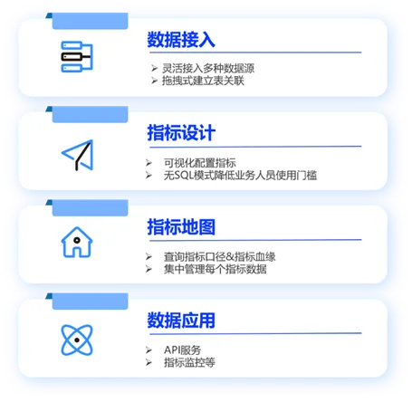 赋能业务,统一数据管理 :解决保险公司长期以来存在的指标口径不一致与指标管理混乱问题。一次定义,多次复用,集中管理公司级指标,如保费、赔付率、客户留存率等,构建保险企业坚实的数据基础,为各项业务的开展提供有力支撑。