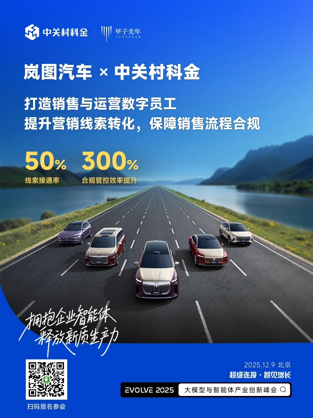 和他们一起!拥抱企业智能体,释放新质生产力12月9日,“超级连接・智见未来” —— EVOLVE 2025 大模型与智能体产业创新峰会,将聚焦行业智能升级的核心诉求,携手全球人工智能领域专家、行业顶级智库,以及金融、工业、汽车、零售等行业标杆实践者,共同探讨创新发展之路,智见未来。立即扫码参会或点击下方卡片预约直播,抢占智能化转型先机。与千行百业实践者共探新质生产力释放路径,解锁专属行业智能升级方案。市场活动2025-12-08查看详情 -