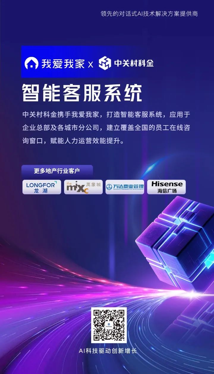 中关村科金携手我爱我家打造智能客服系统,应用于企业总部及各城市分公司,赋能人力运营效能提升。