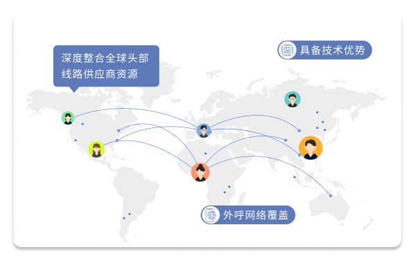 具备海外服务器集群及节点加速的技术优势,保障呼叫质量